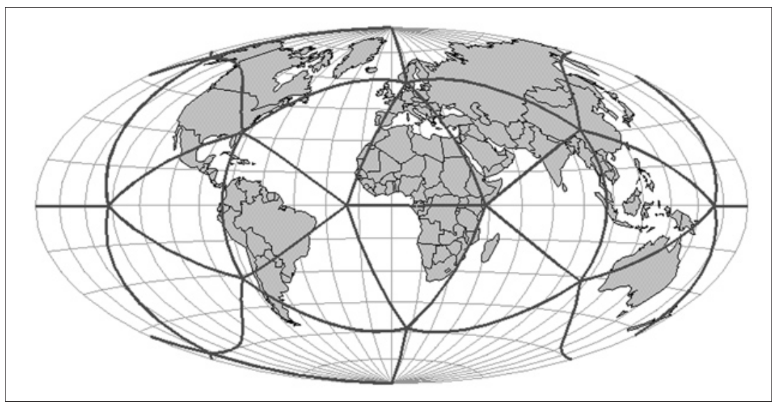HEALPix(2005) originates from the astronomical community, and it is a hierarchical, congruent and aligned square grid projected to a sphere used to study the background radiation and global warming. HEALPix works directly on a sphere and pixelises (discretises in DGGS) the sky (Earth surface) into a map. It performs the partition directly on the sphere with the 12 pixels as the base. The following figure shows how the sphere is tessellated into finer refinement levels.