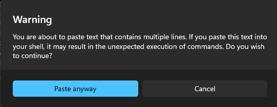 If you get an error message that insinuates a security exception or something similar regarding a file profile.ps1, you might need to change the execution policy of your Powershell. This is a security feature of Windows, that prevents you from running scripts that you didn’t write yourself. You can change the execution policy by running the following command in the Powershell: